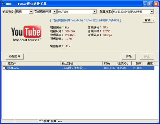 第三:选择好输出路径后,即可点击“开始”来完成视频转换。转换好的视频格式为*.flv 格式。用此格式的视频,您可以直接去个人空间上传了。