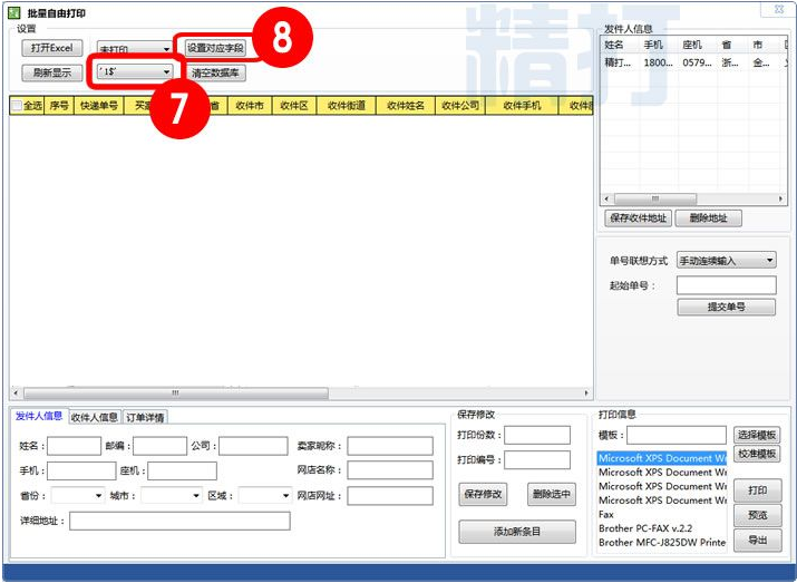批量从任意Excel的工作簿中导入收件人,订单信息,输出到打印机。