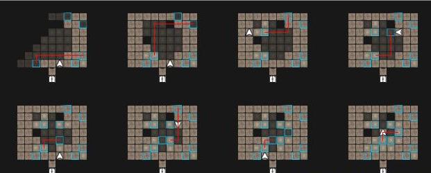 雷区包括五种地板,黄色地板表示周围四个格子中有一个雷,橙色是有两个雷,红色则是三个雷,没有颜色就是没有雷,最后一种就是轰的一下踩到雷了。玩家理论上是可以通过计算走安全格子,一步一步走到终点的。为什么说是理论上呢?实际这是游戏设计师的失误,其中一个格子的颜色设计错了,导致计算过程中到一个地方肯定需要碰运气或者S/L。