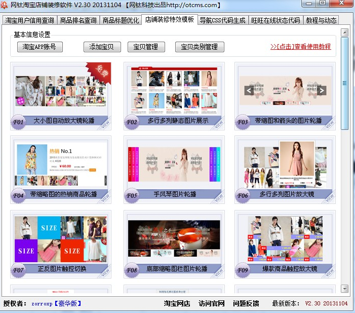店铺装修特效模板:目前有20种特效代码设置(如图),后期将推出更多特效代码,让你可以装修出内容丰富个性化十足淘宝店铺,告别那至少几千人用同套淘宝服务市场里的模板,自己的店铺自己掌握。