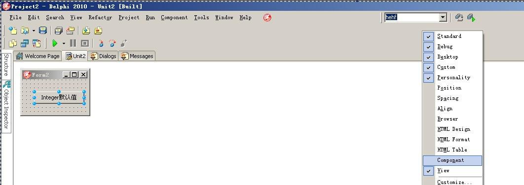 1、 把控件栏设置成D7的样式(但未找到多行设置),右击工具栏部分,选择Component