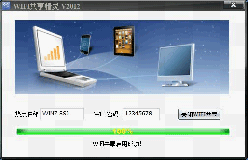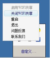 1.单击桌面右下角的托盘图标,打开上面隐藏的主窗口,点击<关闭WIFI共享>即可。