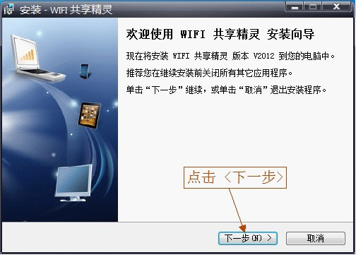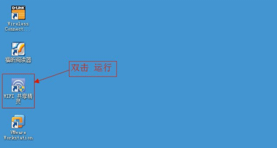 1、双击桌面上的 WIFI共享精灵 图标,运行程序。