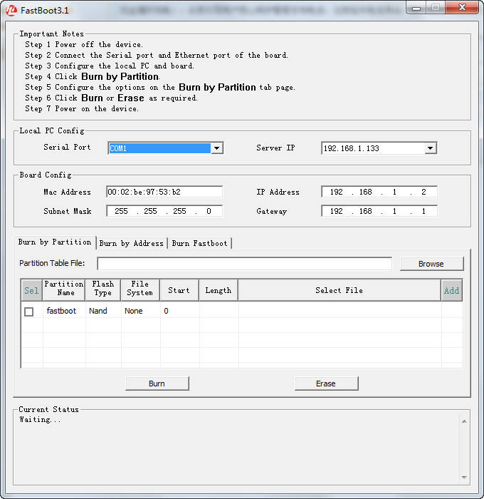 FastBoot刷机工具,基于ARM的系统开发的初期,烧写FLASH是必不可少的步骤,这是一款通过串口进行烧写UBOOT或者刷机的小工具。
