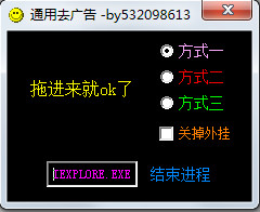 1、选择三种去广告方式的其中一种(默认方式一)然后把程序拖到窗口里就ok了。