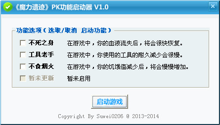 下载后放置在游戏目录,双击运行。勾选需要的功能项,点击“启动游戏”即可。勾选的功能将在游戏中逐渐获得相应的能力,并生效