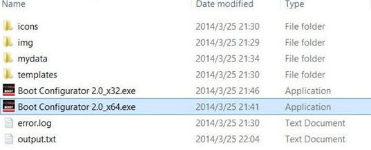 1、下载并解压解压,打开“Boot Configurator 2.0_x32.exe”(32位)或者 “Boot Configurator 2.0_x64.exe”(64位)