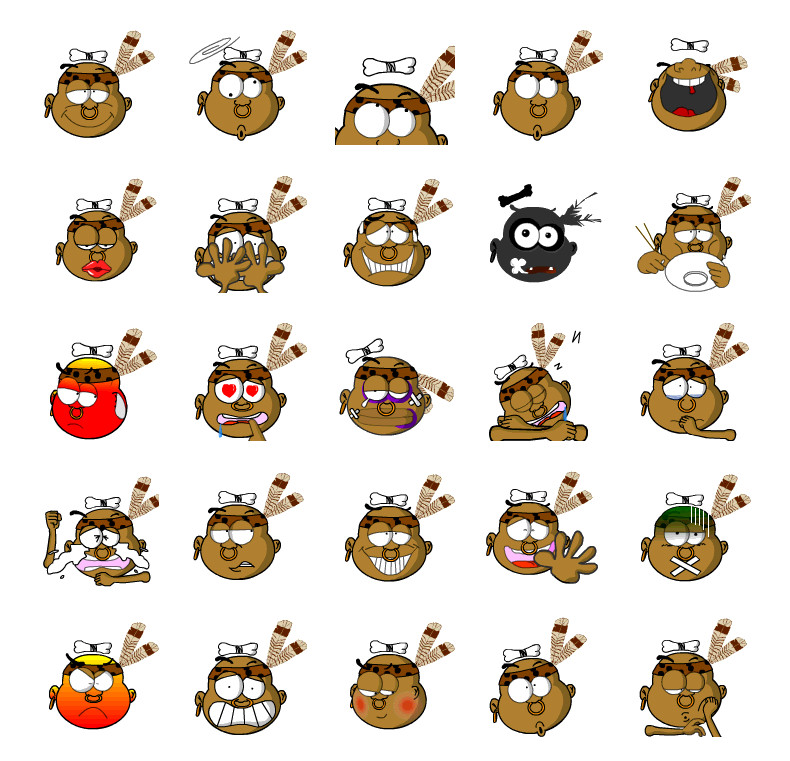 非洲土著人搞怪QQ表情是一款非常有趣的qq表情软件,非洲土著人QQ表情包是一组很有特色的非洲土著人大头表情,让人联想到非洲荒蛮之地的部落原始生活。实在是非常的有趣,是不是很有特色,赶快下载吧!