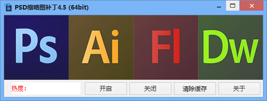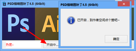 psd缩略图补丁不需要安装什么的,绿色版本,打开后直接就可以用,一个【开启】按钮解决全部问题!