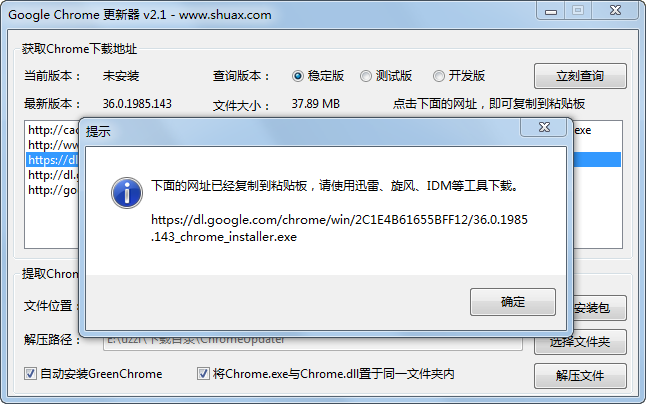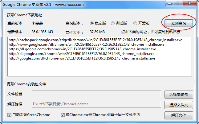 Google Chrome 更新器可以方便的获取Chrome最新安装包下载地址,并自带最新版GreenChrome(开源),可自动解压安装包(不需要安装7zip),方便打造便携版的Chrome。