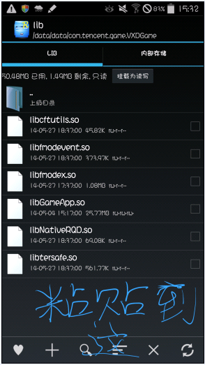 把libGameApp.so复制到date->date->com.tencent.game.VXDGame->lib 粘帖进制