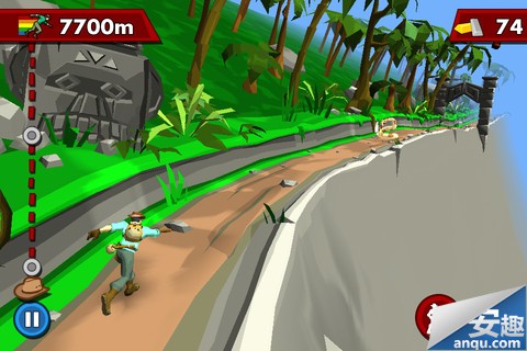 也许有的玩家会觉得这样横向远距离操作不习惯,不着急,丛林冒险游戏过程中,玩家可点击按键切换视角,变成竖版跑酷模式。该模式中加入了重力感应和滑动屏幕操作,有时还需点击屏幕完成操作,游戏过程更有趣。