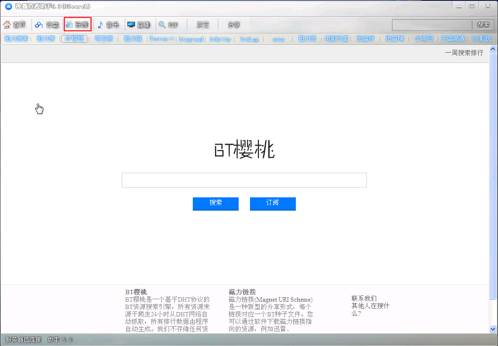 1、打开神播资源助手(GSearch)后选择【资源】选项卡