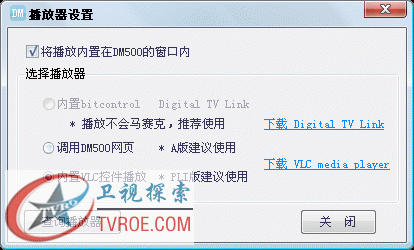 支持调用三种播放方式,PLI版建议使用内置VLC控件,其它版建议使用DIGITAL TV LINK