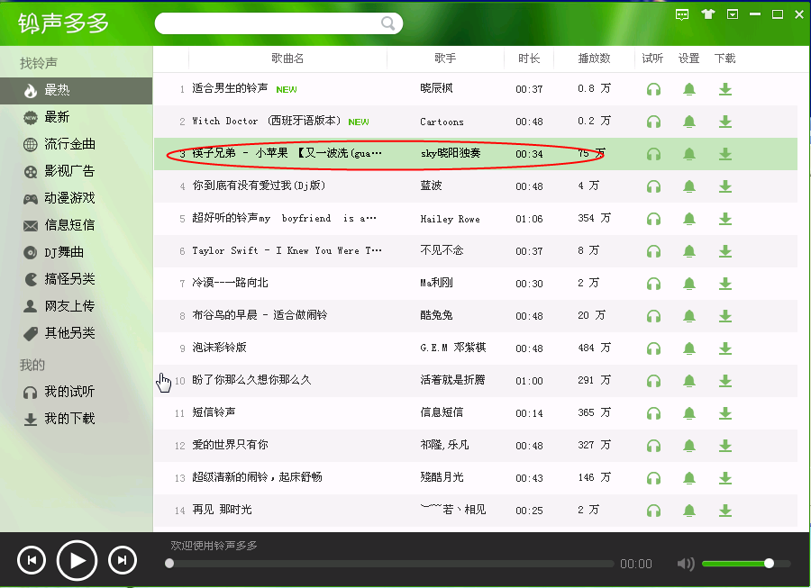 2、可以预览手机铃声,也就是你没有下载也可以听