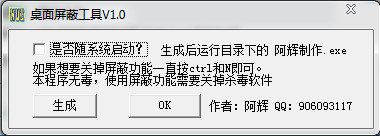 4.如果怕别人使用电脑就在生成后点上 随系统启动,每次开机便可屏蔽桌面 。