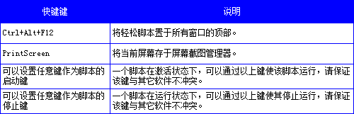 请保证你的系统在运行轻松脚本的同时不会有其它软件也使用以下快捷键,否则可能会引起冲突。