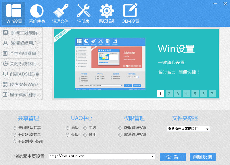 全方面针对系统常规设置优化进行编写打造,设置-精简-清理-优化-美化一条龙服务是装机人员、系统工程师、系统维护人员处理系统的最佳搭档。