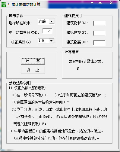 年预计雷击次数计算器(建筑物年预计雷击次数)是一款功能齐全的好软件,是一款不可多得的好软件,年预计雷击次数计算可以大概的计算出建筑物每年遭雷劈的次数的工具这款软件能够同时兼容多种强大功能,给你不一样的人生体验,本款软件绿色安全,完全可放心使用,有兴趣的小伙伴们千万不要错过哦!
