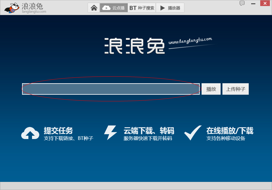 浪浪兔云播拥有云点播、bt资源搜搜和视频播放三大功能,使用者可以通过本软件直接在线点播各种高清电影和电视节目直播,支持各种资源的在线云播放,非常的给力。