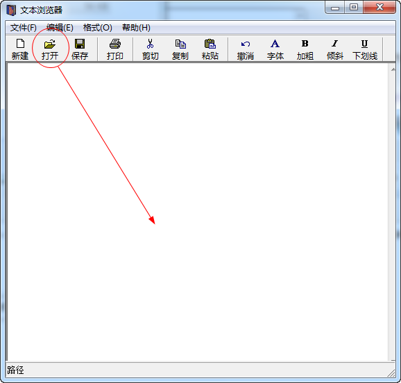 文本浏览器将一些常用的操作选项设置到工具栏:新建、打开、保存、打印、剪切、复制、粘贴、撤销、字体、加粗、倾斜、下划线、左对齐、居中、右对齐