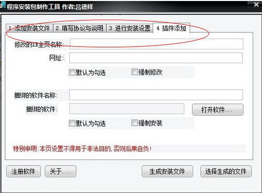 2、在第四步插件添加一项设置不得用于非法目的,否则后果自负!