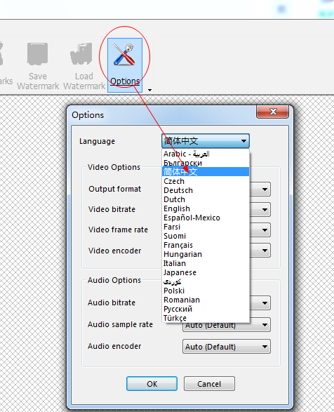 这款软件官方支持简体中文语言,大家安装后,启动程序,点击工具栏上的Options按钮,然后在设定语言(Language)时选择Chinese 或者Chinese Simplified(简体中文)即可。