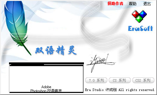 [重要提示] 本程序是翻译程序,并非做图程序,需要配合PhotoShop做图程序才可以使用,是用来翻译PhotoShop英文版的,请初学者不要弄混,仔细看清。