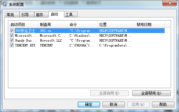 点击运行-->输入msconfig-->打开系统配置实用程序-->点击启动-->将里面不需要的启动项取消勾选,确定即可。
