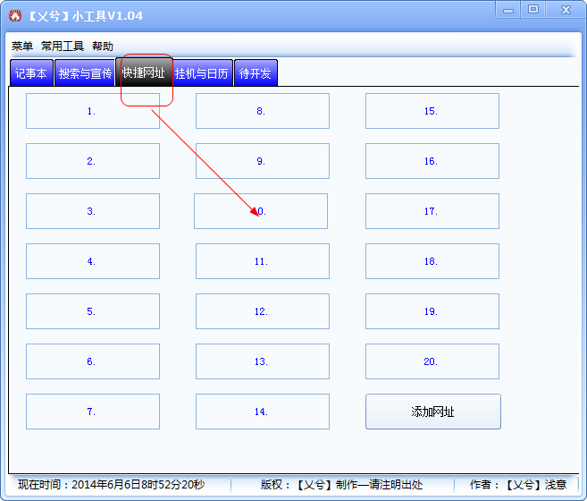 多功能工具箱(乂兮小工具),是一款集成多种常用小工具的多功能工具箱,有需要的可以下载,易语言编写。功能包括:记事本、搜索与宣传、快捷网址、挂机与日历。
