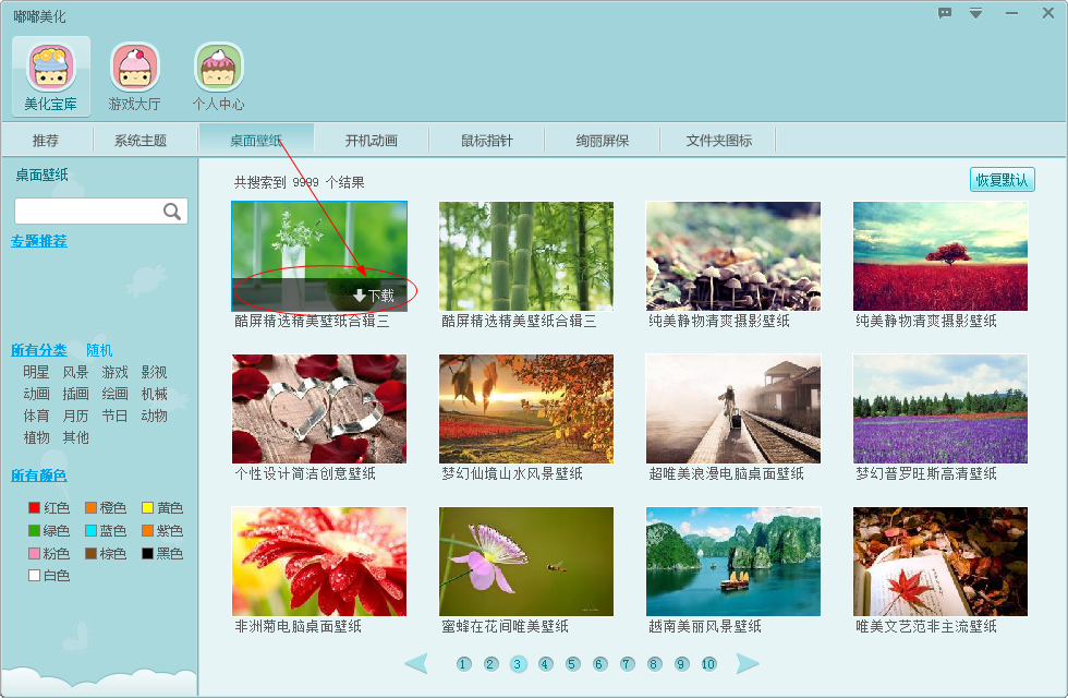 2、点击对应的功能可以进入相关选项,选择要美化的内容,点击下载,然后应用即可