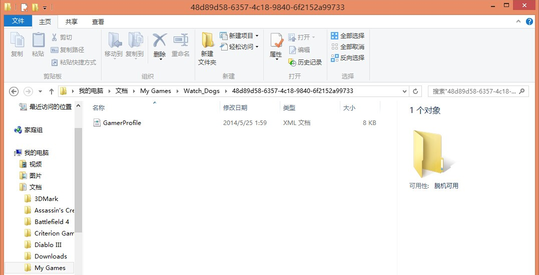 配置文件在我的文档\My Games\Watch_Dogs\一串数字英文的文件夹里的GamerProfile.xml