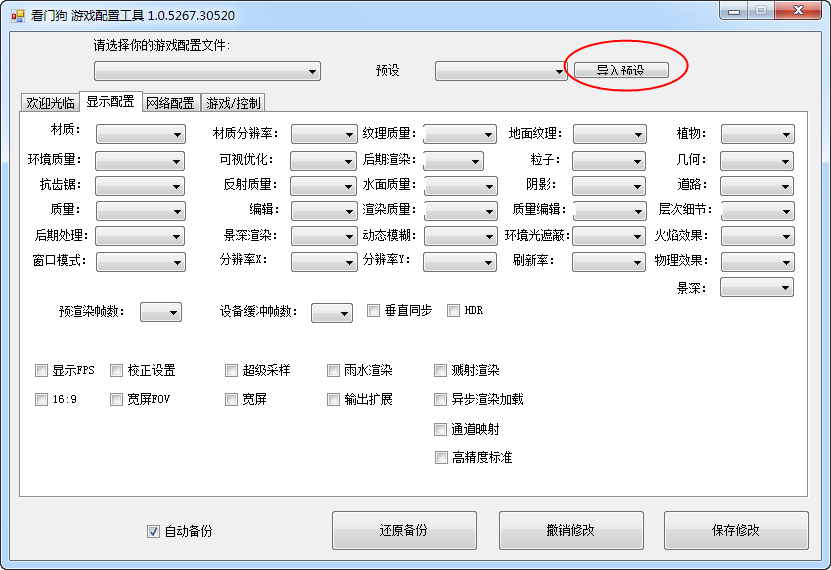 看门狗游戏配置工具是一个绿色免费的看门狗游戏配置文件修改工具,使用该软件可以直接更改游戏中的显示配置、网络配置和游戏控制配置,而不必编辑.cfg或.xml文件。该软件使用非常简单,依靠这个工具,玩家有大量可调节的画面选项,至少在育碧发布修正补丁之前,我们可以降低目前的负面画面效果。
