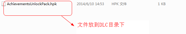 1、将下载的AchievementsUnlockPack.hpk文件放到DLC目录下