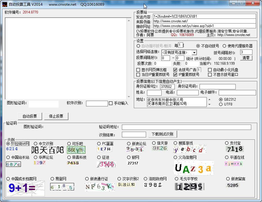突破了同类软件的纯模拟手工,采用GET,POST方式提交数据到服务器,提高了投票速度的5倍以上,减少人工疲劳.经过长时间的实践测试,功能更强大完善。图型识别功能,能够快速破解验证码,识别各大知名网站的图型验证码。部分网站还能使用代理IP或伪造IP等技术突破IP限制,能在局域网内或网吧里或通过路由器等不可更换IP的电脑上使用。自助投票功能简单易用,内置了通用的IE7.0浏览器,这一核心技术使它能够适用于任何投票网站的投票系统,对于有来路检测、SESSION验证、Cookies、经常改动统计文件名或路径的网站更能突出本投票软件的优越性。辅助投票功能使用了可编程技术,使应用更加深入灵活。