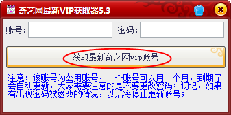 1、启动软件后点击【获取最新奇艺网VIP账号】
