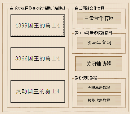 1、双击打开国王的勇士4 贺2014马年修改器后,请选择相对应的辅助