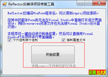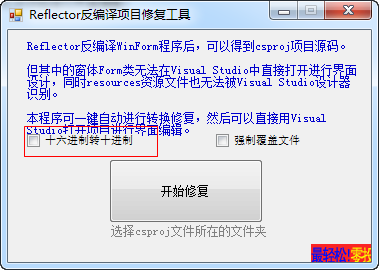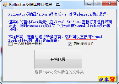 Reflector反编译项目修复工具,是一款能够在Reflector反编译WinForm程序后,可以得到csproj项目源码的实用工具。