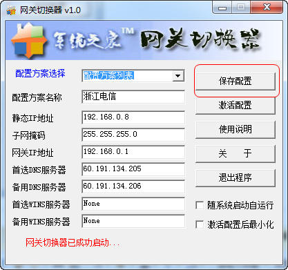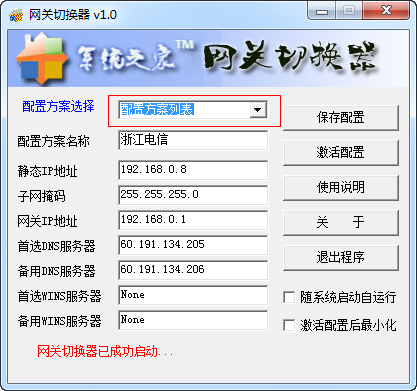 网关切换器是一款非常实用的网关管理工具,使用者通过本工具能够自由的对网络的IP、子掩码等参数进行修改,多用于各种公共场合的网络中。网关切换器可以设置多套配置方案,方便随时更换ip、网关等参数,小巧易用。