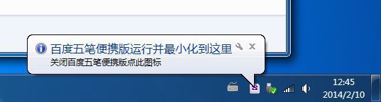 1、启动百度五笔便携版的 ,右下角任务栏的托盘提示
