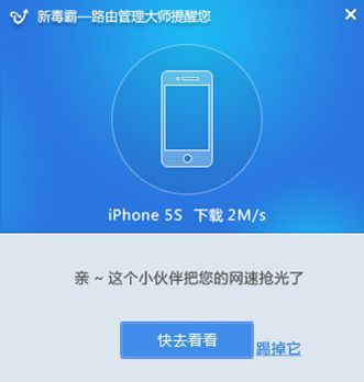 如果有人蹭网消耗大量带宽,路由管理大师会及时提醒,也可直接“踢人”,禁止该设备再次蹭网。