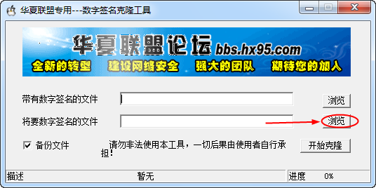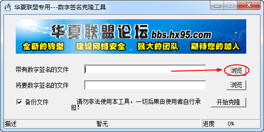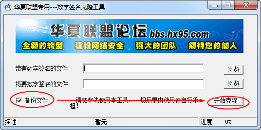 3、勾选上“备份文件”,然后点击【开始克隆】就可以将别人的数字签名复制到我们的文件中进行签名。