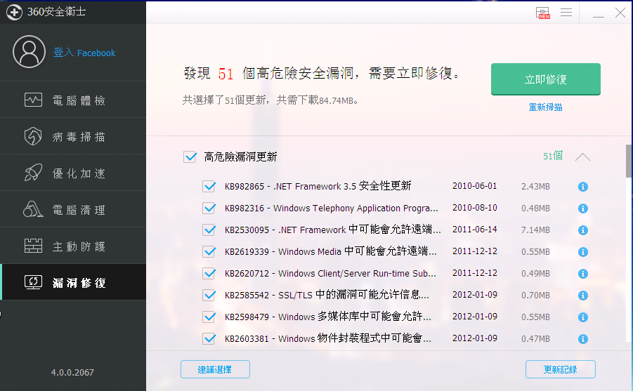 帮您扫描和修复系统的漏洞,让您的系统永远坚不可摧~