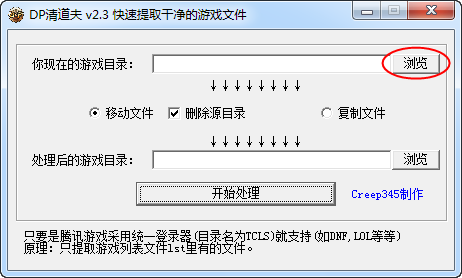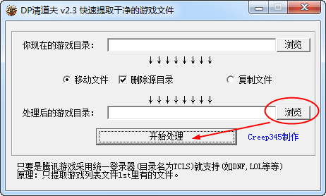 3、点击下面的【浏览】按钮设置处理后的游戏目录保存为位置
