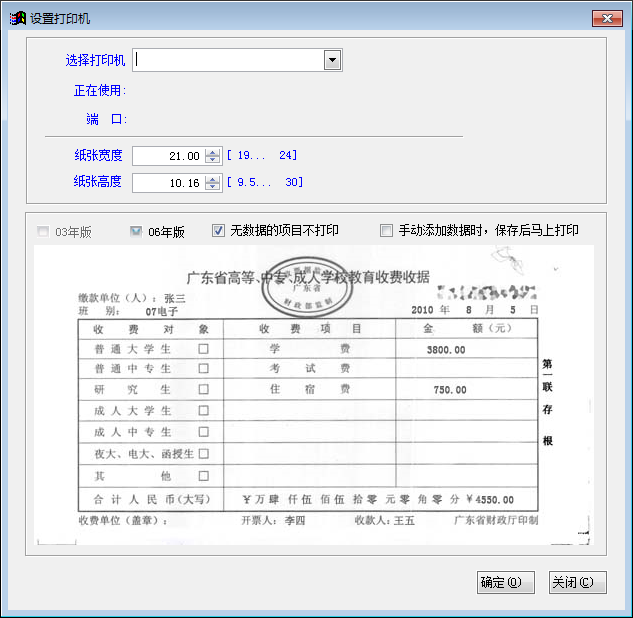 (5)可打印只有金额或其它部份内容的收据,空白内容再手写在收据上。