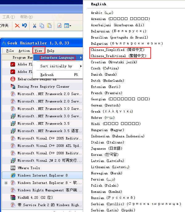 ①带有中文语言。默认情况下,首次运行后可能是繁体中文界面,你可以在“界面语言”菜单中更改过来。