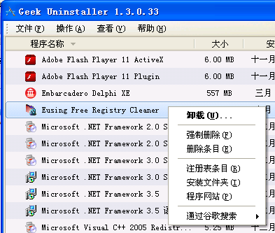 ②界面简单,使用方便。这个软件只有一个主界面。windows中所有已安装的软件会全部显示在这里,而所有和卸载有关的功能都集中在右键菜单中。