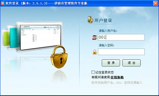 软件登录界面。默认用户名是001、密码为空,点击“登录”按钮。