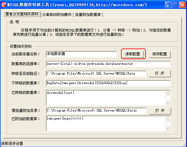 这是一个用于对当前电脑的mssql数据库进行分离转移附加的工具。