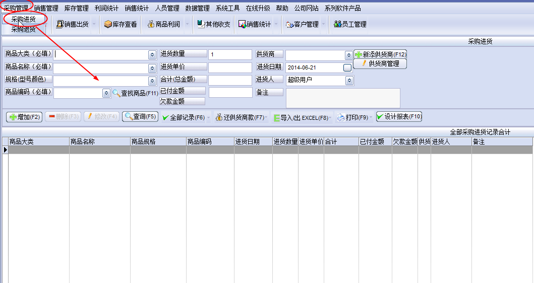 2在点击【采购管理】,就会有下面的提示,这时不用担心,点【采购管理】下面的【采购进货】。就会出现一个对话框,在这里输入你的情况就可以了